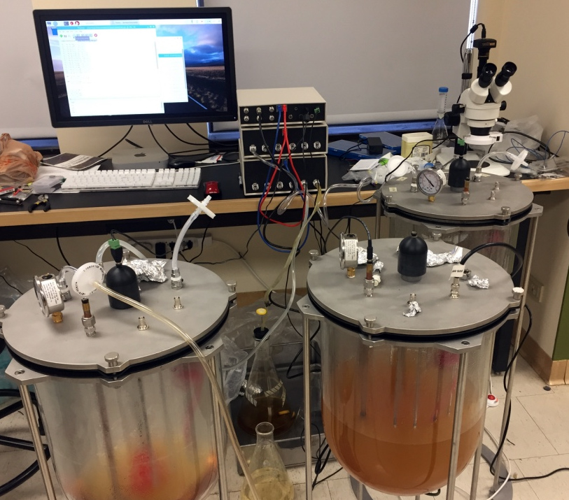 the three glass bioreactors. Each bioreactor incubates a unique species
